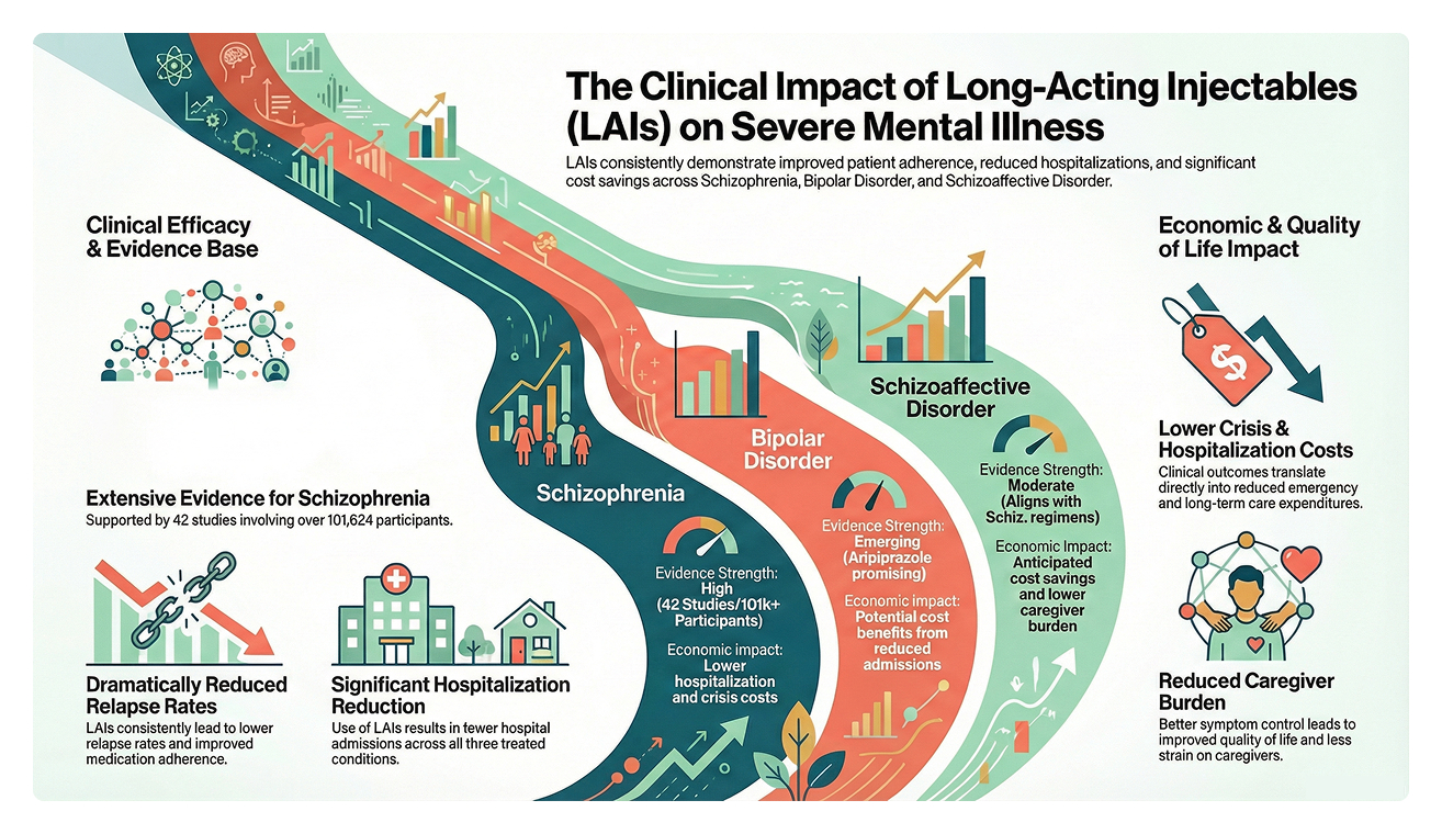 | Impact on Burden of Illness | Reduced admissions, better long-term outcomes | Improved quality of life, fewer severe episodes | Better symptom control, lower caregiver burden |